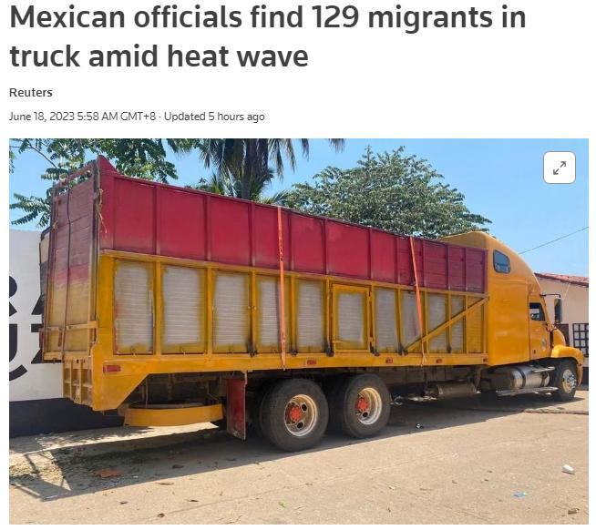 據(jù)報道,移民當局表示,他們在一輛卡車內(nèi)發(fā)現(xiàn)了這些移民,事發(fā)地近日正遭受熱浪侵襲,當天的室外溫度已達到45攝氏度。
