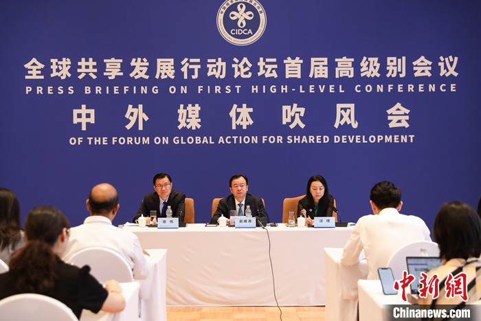 7月4日,全球共享發(fā)展行動(dòng)論壇首屆高級(jí)別會(huì)議中外媒體吹風(fēng)會(huì)在北京舉行。針對(duì)有觀點(diǎn)認(rèn)為西方國(guó)家與發(fā)展中國(guó)家看待全球發(fā)展倡議的視角不同,對(duì)全球發(fā)展倡議的評(píng)價(jià)也不同,中國(guó)國(guó)家國(guó)際發(fā)展合作署副署長(zhǎng)趙峰濤(中)在北京回應(yīng)指出,全球發(fā)展倡議面向全球,無(wú)分南北。倡議是開放、包容的,不能用狹隘的地緣政治、冷戰(zhàn)思維、陣營(yíng)對(duì)抗理念來(lái)解讀。 中新社記者 趙雋 攝