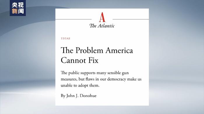 今年4月,斯坦福大學法學院教授約翰·多諾霍在《大西洋月刊》上刊文表示,槍支暴力已成為“美國無力解決的問題”。他表示,大規(guī)模槍擊事件是一個嚴重且日益惡化的問題,給公眾帶來了沉重的負擔,同時“也說明了美國政治體系在采納眾多受歡迎的公共政策策略方面的無能為力”,這是美國的“國家恥辱”。如果美國政客仍拒絕傾聽民眾的呼聲,美國人恐怕永遠難以安心慶祝“獨立日”。(央視新聞客戶端)