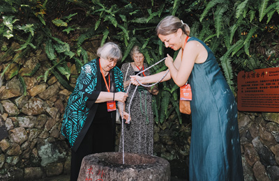 走過枝繁葉茂的千年柳杉,穿過青石鋪就的鼓嶺老街,在始建于1914年的萬國公益社,大家圍坐桌前共敘鼓嶺情緣,一幅穿越時光的友誼畫卷緩緩打開。