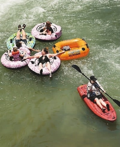 美國(guó)南部多地近日接連刷新高溫紀(jì)錄。圖為近日,在美國(guó)得克薩斯州新布朗費(fèi)爾斯,人們?cè)诤又邢睢?/p>