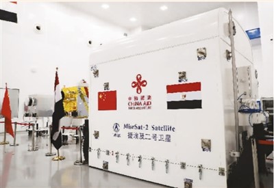 中國政府援助埃及二號衛(wèi)星初樣星交付儀式6月25日在埃及航天城衛(wèi)星總裝集成測試中心舉行。此次交付使埃及成為首個(gè)具備衛(wèi)星總裝、集成和測試能力的非洲國家。圖為交付儀式現(xiàn)場。