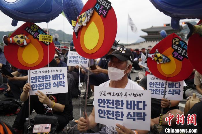 當(dāng)?shù)貢r(shí)間7月8日,韓國多個(gè)市民團(tuán)體和在野黨在首爾集會,抗議日本強(qiáng)推核污染水排海計(jì)劃?!≈行律缬浾?劉旭 攝
