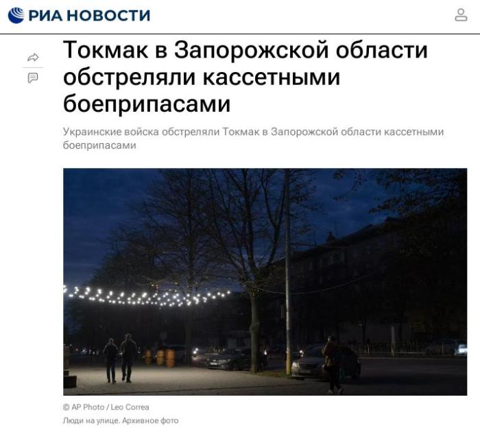 中新網(wǎng)7月12日電 據(jù)俄新社當(dāng)?shù)貢r(shí)間11日?qǐng)?bào)道,扎波羅熱地區(qū)的托克馬克市作戰(zhàn)部門稱,烏克蘭軍隊(duì)使用集束彈藥對(duì)該地進(jìn)行了打擊。