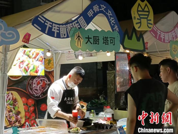 中新財經(jīng)了解到,該夜市舉辦時間為6月9日-7月9日,每天下午4點-晚上10點,為沉浸式甲骨文主題夜市。盡管打著甲骨文藝術(shù)節(jié)的旗號,但在涵蓋小吃、飲品、手工飾品、互動游戲等各色賣點夜市上,游客們依然用行動投票出了他們最感興趣的環(huán)節(jié)——排起長隊的,無一不是特色小吃。