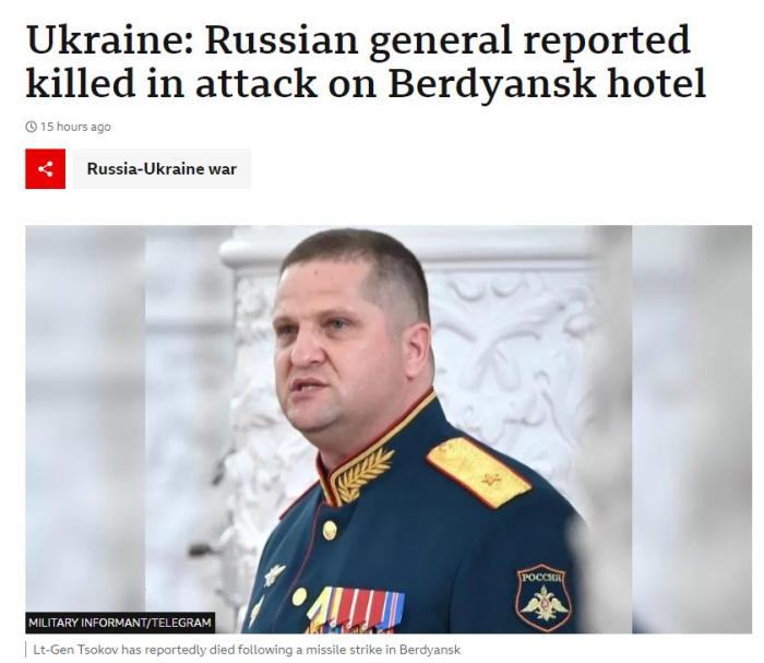 英國(guó)廣播公司(BBC)報(bào)道俄羅斯南部軍區(qū)副司令措科夫遇襲身亡。圖片來源:BBC報(bào)道截圖