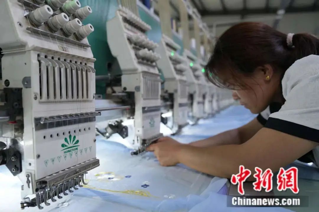 今年以來,漢服生產(chǎn)需求激增,用當(dāng)?shù)厣碳业脑捳f,“每天吵醒的不是鬧鐘而是訂單聲”,工人們?yōu)榱粟s制漢服經(jīng)常加班到凌晨兩三點鐘。