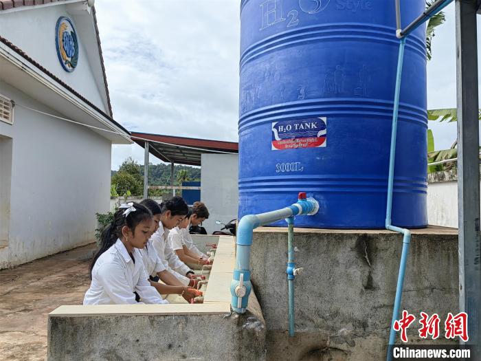 俄勒塞村小學(xué)距離柬埔寨首都金邊約300公里。由兩個巨大的藍色圓形容器組成的反滲透純水處理系統(tǒng)矗立在校園一隅。一個月前,這套設(shè)備正式投入使用。擰開水龍頭,一股清澈透明的純凈水嘩嘩直流,學(xué)生們臉上洋溢著喜悅的笑容。