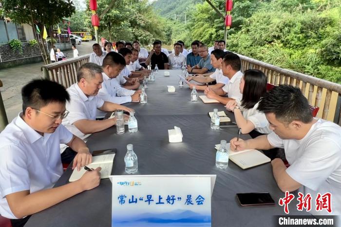 7月23日,“早上好”晨會(huì)在浙江省衢州市常山縣田蓬村召開(kāi)。中新社記者董易鑫攝
