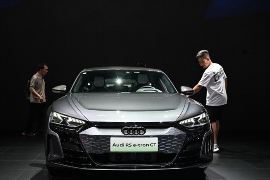 觀眾在長(zhǎng)春汽博會(huì)上的一汽-大眾奧迪展位參觀(7月20日攝)。(新華社記者顏麟蘊(yùn)攝)
