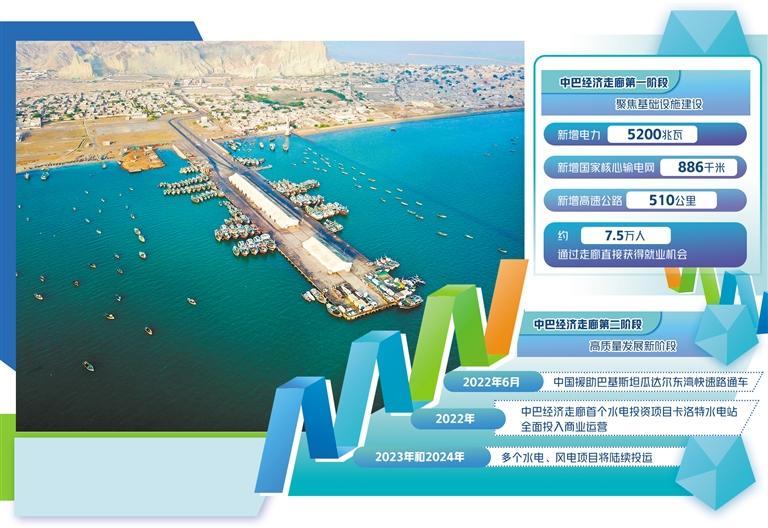 當(dāng)前正處于中巴經(jīng)濟(jì)走廊建設(shè)的第二階段,這也是至關(guān)重要的高質(zhì)量發(fā)展新階段。中巴雙方在走廊框架下,進(jìn)一步加強(qiáng)巴國(guó)工業(yè)化進(jìn)程、人力資源培訓(xùn)和產(chǎn)業(yè)園區(qū)建設(shè),在扶貧、醫(yī)療、農(nóng)業(yè)以及互聯(lián)網(wǎng)等眾多與民生息息相關(guān)的領(lǐng)域持續(xù)深化合作,力求創(chuàng)造更多就業(yè)機(jī)會(huì),不斷推動(dòng)巴基斯坦的經(jīng)濟(jì)和社會(huì)現(xiàn)代化發(fā)展,造福當(dāng)?shù)孛癖姟?022年6月,中國(guó)援助巴基斯坦瓜達(dá)爾東灣快速路通車(chē),打通了瓜達(dá)爾港和卡拉奇之間的交通運(yùn)輸通道。同年,中巴經(jīng)濟(jì)走廊首個(gè)水電投資項(xiàng)目——卡洛特水電站全面投入商業(yè)運(yùn)營(yíng),每年將向巴基斯坦提供32億千瓦時(shí)廉價(jià)清潔電能,滿足當(dāng)?shù)?00萬(wàn)人用電需求,每年可節(jié)約標(biāo)準(zhǔn)煤約140萬(wàn)噸,減少二氧化碳排放350萬(wàn)噸。今明兩年,走廊框架下的多個(gè)水電、風(fēng)電項(xiàng)目將陸續(xù)投運(yùn),未來(lái)巴基斯坦在清潔能源領(lǐng)域大有可為。