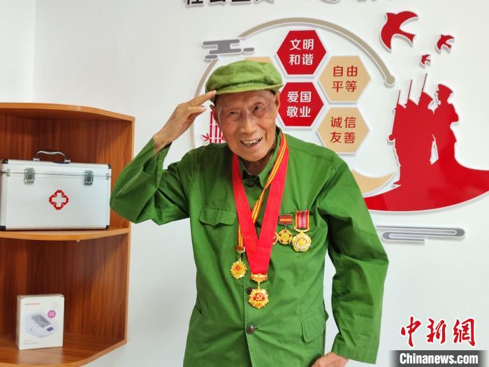 中新網(wǎng)贛州8月1日電 (熊錦陽)整理好軍裝,佩戴上勛章,8月1日清晨,老兵王益民就已洗漱完畢,對(duì)他而言,今天是一個(gè)重要的日子。早上6點(diǎn)15分,通過直播,王益民聚精會(huì)神地觀看著南昌八一廣場(chǎng)上舉行的升旗儀式,隨著五星紅旗緩緩升起,這位93歲的抗美援朝老兵迅速立正抬手,向著鮮艷的國(guó)旗做了一個(gè)標(biāo)準(zhǔn)的軍禮……