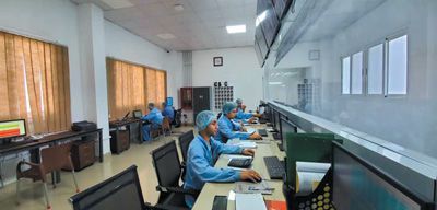 在安琪酵母(埃及)有限公司抽提物生產(chǎn)部中控室,當(dāng)?shù)貑T工正在檢查數(shù)據(jù)。