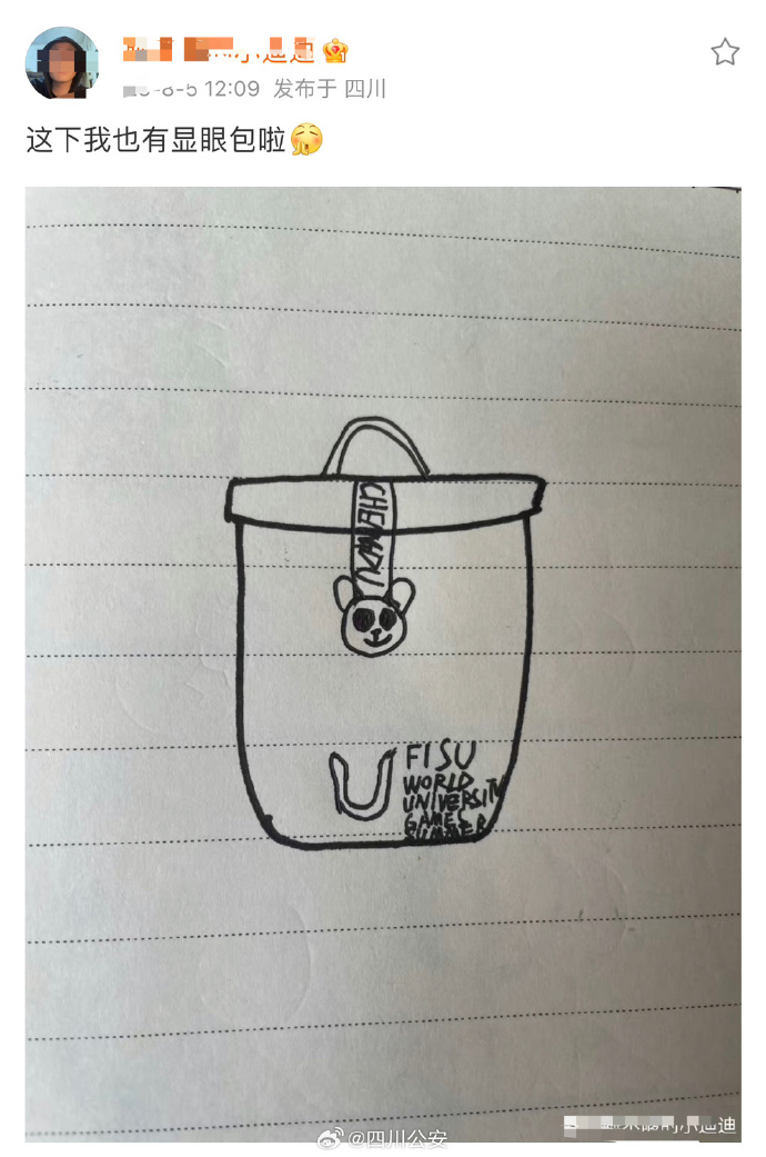 據(jù)悉,一位“00后”警察在護(hù)航大運(yùn)會期間,也“種草”了這款帆布包。師兄對他說,你畫一個(gè)就當(dāng)你也有了。于是,這屆大運(yùn)會又多了一個(gè)靠畫風(fēng)走紅的“顯眼包”。