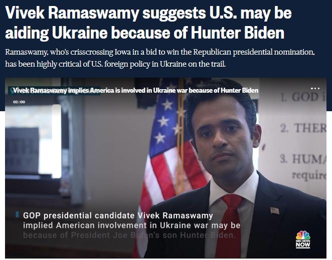 中新網(wǎng)8月8日電 據(jù)美國(guó)全國(guó)廣播公司(NBC)報(bào)道,當(dāng)?shù)貢r(shí)間6日,美國(guó)共和黨2024年總統(tǒng)競(jìng)選人維韋克·拉馬斯瓦米稱,美國(guó)參與烏克蘭危機(jī)或與拜登家族腐敗有關(guān)。