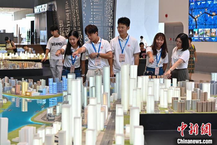 8月8日,2023年全國臺聯(lián)第二十屆臺胞青年千人夏令營廣東分營在廣州開營。圖臺灣青年學(xué)生在廣州市城市規(guī)劃展覽中心內(nèi)參觀。中新社記者 陳驥旻 攝