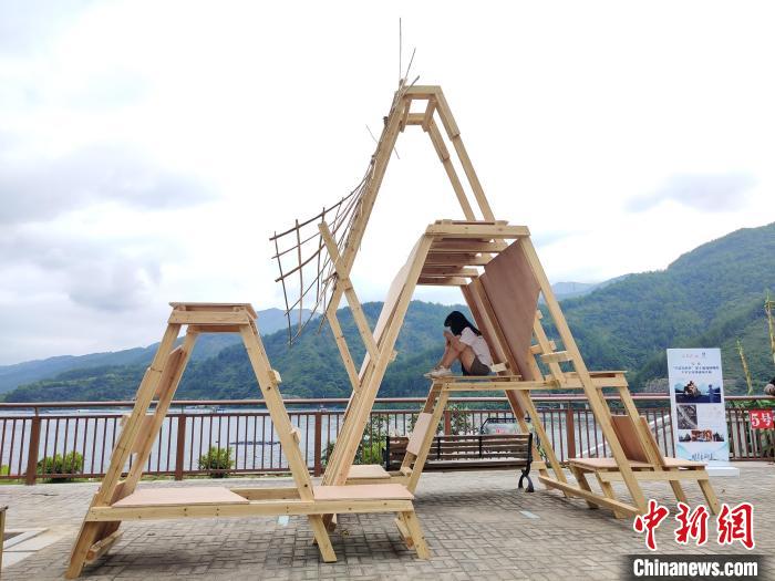 “初識(shí)雄江鎮(zhèn),映入眼簾是美麗的江邊水景與層層翠綠的山巒?!迸_(tái)灣銘傳大學(xué)學(xué)生張竹萱接受記者采訪時(shí)表示,為了讓模型與當(dāng)?shù)孛癖娪谢?dòng)性,作品《山岳之渝》以梯田地形為概念,將空間拆解成不同高低且錯(cuò)落的休憩平臺(tái),可以讓游客和民眾登高遠(yuǎn)眺,更好地看見雄江鎮(zhèn)山水環(huán)繞的美景。