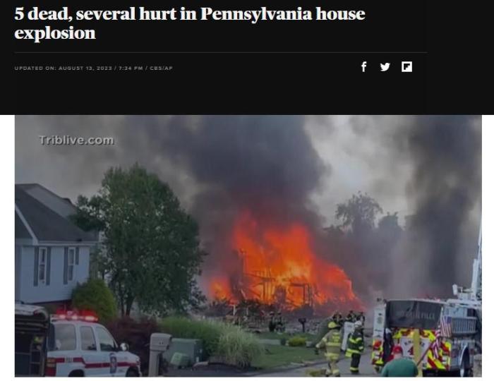 中新網8月14日電 據外媒報道,當地時間12日,美國賓夕法尼亞州匹茲堡附近城鎮(zhèn)普拉姆發(fā)生房屋爆炸。警方表示,這起事故已造成5人死亡、3人受傷,多座建筑物受損。
