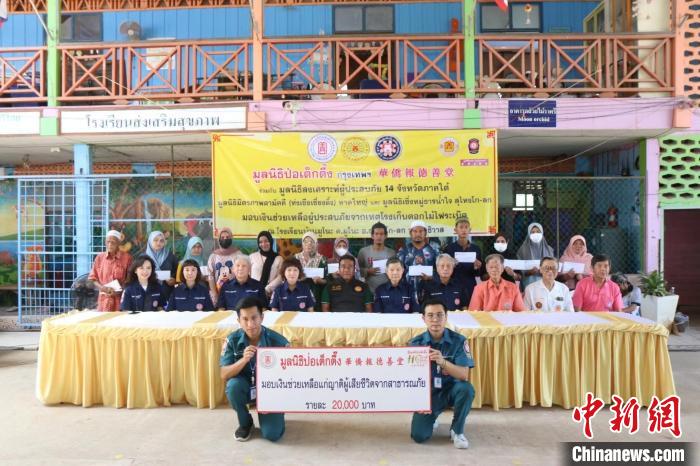 8 月 9 日,華僑報(bào)德善堂和泰南十四府聯(lián)合救災(zāi)機(jī)構(gòu)向爆炸案受害者發(fā)放救濟(jì)金。中新社發(fā) 受訪者供圖