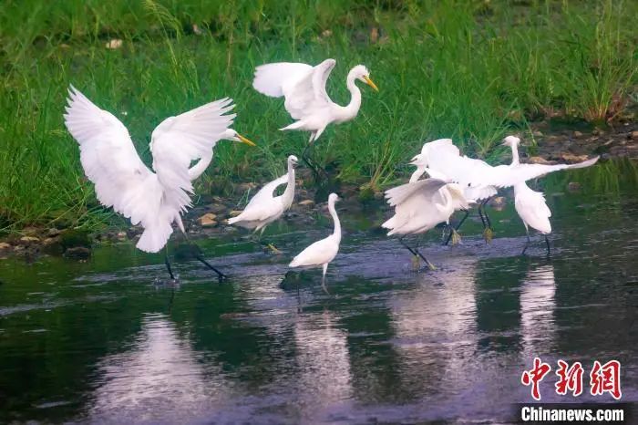 資料圖:在山東省日照市五蓮縣洪凝河,白鷺在翩翩起舞。王義全 攝