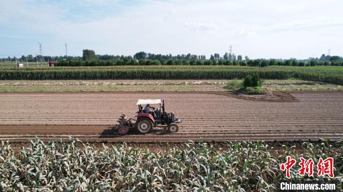 8月14日,河北省涿州市刁窩鎮(zhèn)小豹子莊村,村民李景山家的耕地開始復耕。(無人機照片)中新社記者 翟羽佳 攝