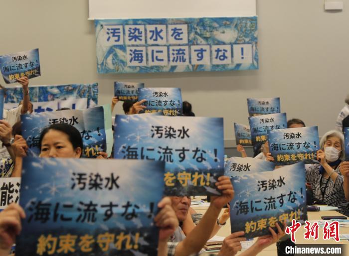 8月18日,日本民眾在日本參議院議員會館舉行集會,要求政府遵守當(dāng)初作出的不擅自處置核污染水的承諾,撤回核污染水排海計劃。中新社記者 朱晨曦 攝