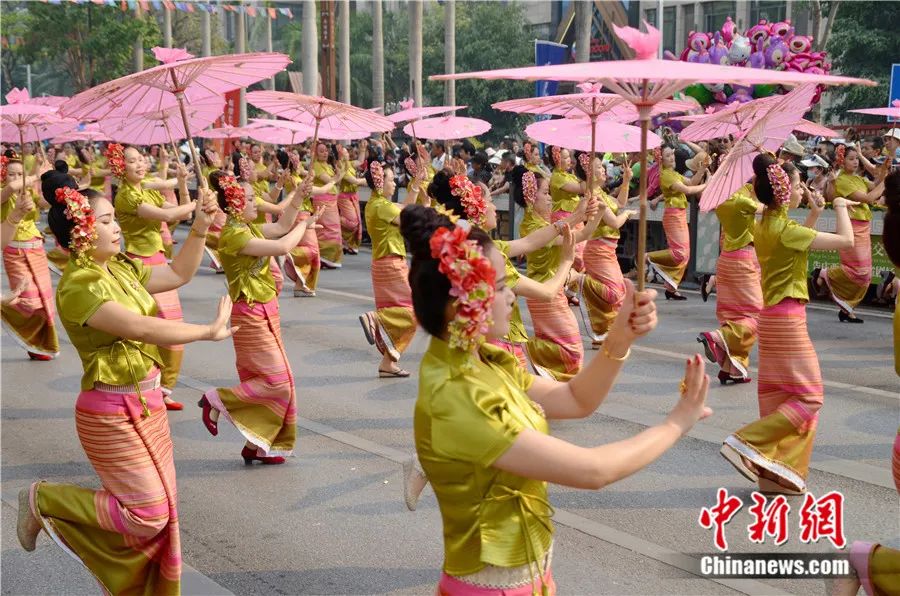 中國西雙版納傣族翩翩起舞慶祝潑水節(jié)??姵?攝
