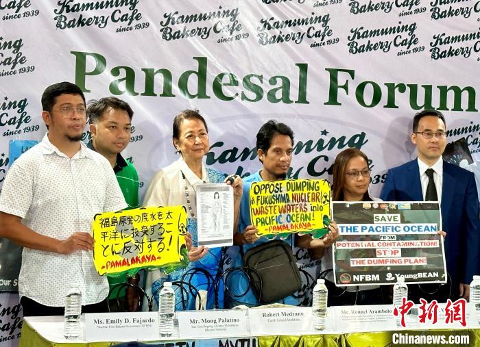 當(dāng)?shù)貢r間8月24日,一場關(guān)于反對日本核污染水排海的“面包坊論壇”在菲律賓首都馬尼拉舉行。圖為與會環(huán)保人士及漁民組織代表等手舉“堅決反對福島核污染水排入太平洋”等標(biāo)語。中新社記者張興龍攝
