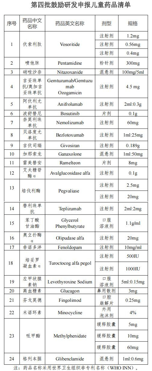 《第四批鼓勵(lì)研發(fā)申報(bào)兒童藥品清單》發(fā)布 包括24個(gè)品種
