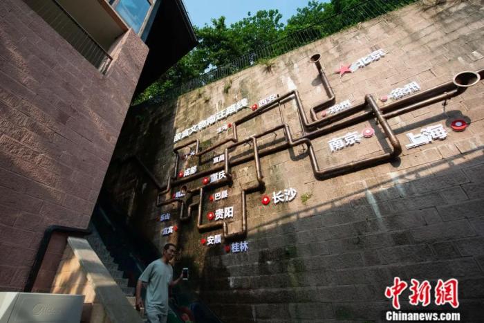 重慶故宮文物南遷紀(jì)念館內(nèi)一處外墻展示的故宮文物南遷路線(xiàn)。何蓬磊 攝