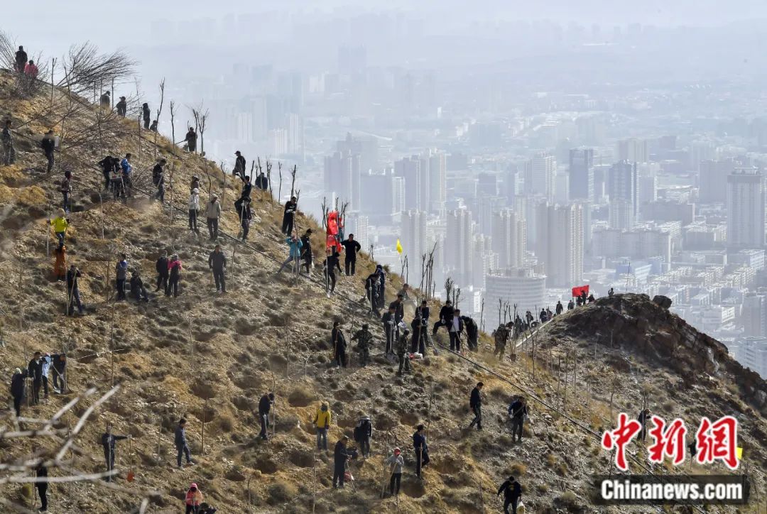 2019年4月,新疆烏魯木齊市沙依巴克區(qū),民眾在雅瑪里克山青年峰下種植樹(shù)木。劉新 攝