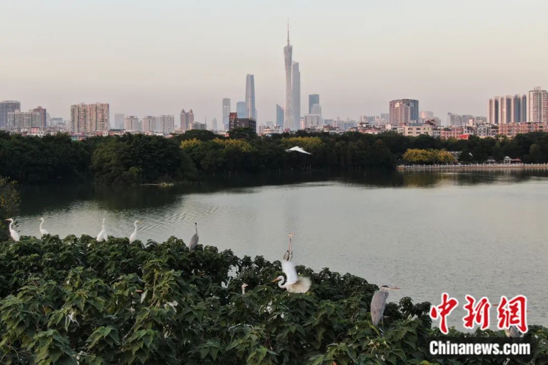 2021年11月,白鷺、蒼鷺等鳥(niǎo)類(lèi)在廣東省廣州市的海珠湖鳥(niǎo)島上停歇。陳楚紅 攝