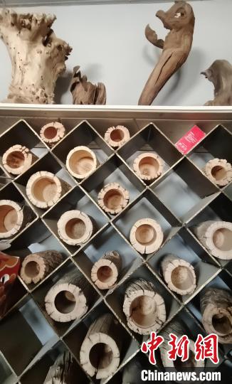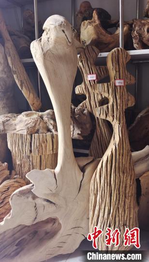 在位于新疆阿拉爾市的戴新根雕加工坊的大院內(nèi),擺放著一堆接一堆的各類待加工“材料”,從長二、三米的朽木、樹根,到僅有幾十厘米長的各種樹枝,至少能裝滿幾輛貨車。中新網(wǎng)記者注意到,偌大的廠房式加工“車間”內(nèi),各類正在加工的半成品約有幾十件。在左側(cè)相鄰的“車間”內(nèi),存放著20世紀70年代前后的字畫、木箱、電影放映機、音樂播放機……