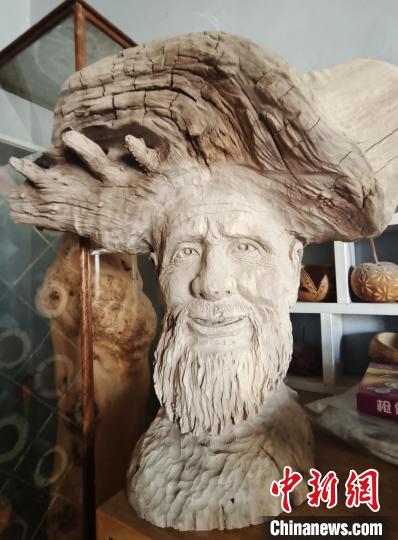 是什么讓這位從事園林工作的職工迷戀上根雕制作的呢?戴新告訴中新網(wǎng)記者,他是在看電影中得到啟蒙。