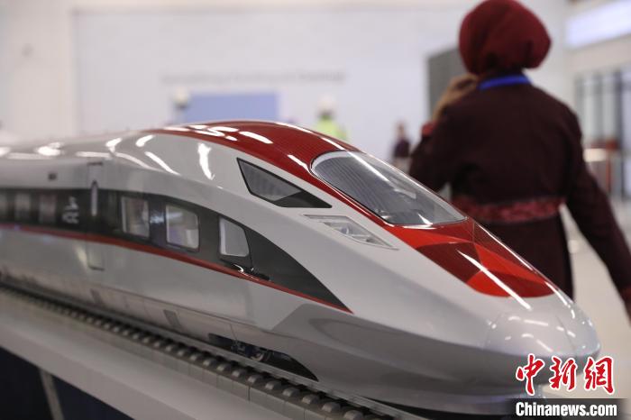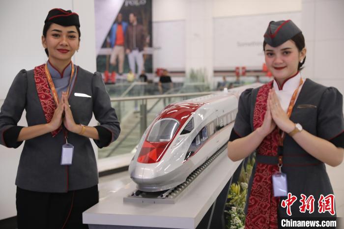 圖為工作人員從雅萬高鐵列車模型前走過。李志全攝