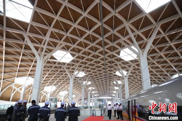 該站也是印尼首都第一站,站房建筑面積2.6萬平方米,可滿足最高2500人同時候車,高峰每小時發(fā)送量為5200人。車站屋面采用金屬面板,菱形造型,鋼結(jié)構(gòu)網(wǎng)架,出挑深遠(yuǎn)。室內(nèi)設(shè)計采用印尼巴迪克傳統(tǒng)蠟染、中國紅等文化元素,中印尼文化巧妙融合、交相呼應(yīng)。