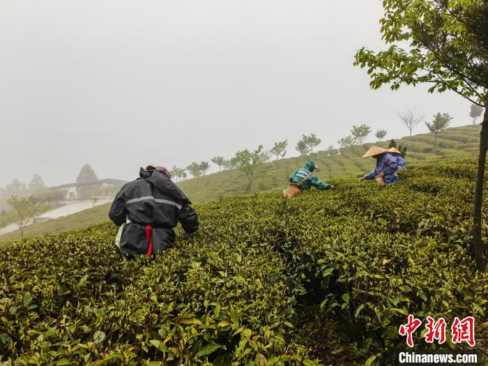 3月24日,福建福鼎的茶園里,工人們正在采摘茶葉。 陳祖貝 攝