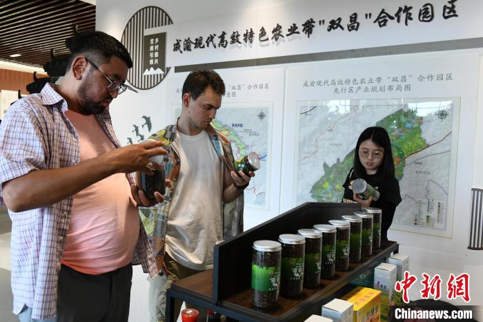 參訪期間,代表團(tuán)一行參觀成渝現(xiàn)代高效特色農(nóng)業(yè)帶“雙昌”合作示范園區(qū)?!≈行律缬浾?周毅 攝