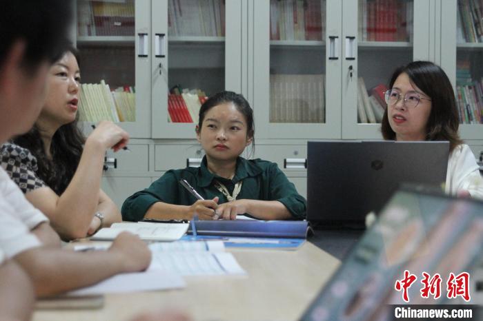 9月7日,在成都紡織高等??茖W(xué)校,“輪椅女孩”張曉麗(右二)與其無(wú)障礙服裝團(tuán)隊(duì)探討。王利文 攝