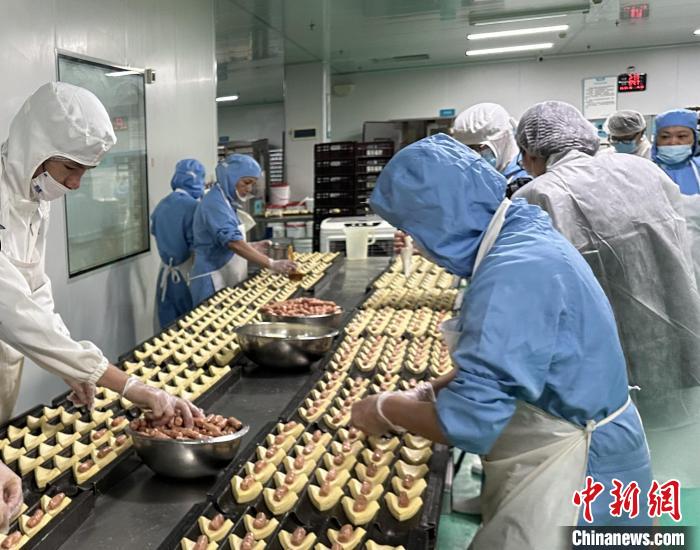 30年來,羅莎蛋糕已從湖南走向全中國,擁有300多家門店和2000多個員工。圖為員工在工廠做面包。 劉曼 攝