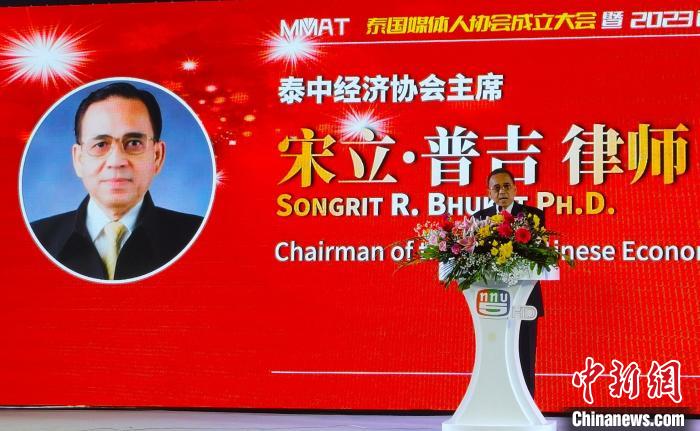 9月9日下午,泰中經(jīng)濟協(xié)會主席宋立·普吉在泰國媒體人協(xié)會成立大會上致辭?! ±钣趁?攝