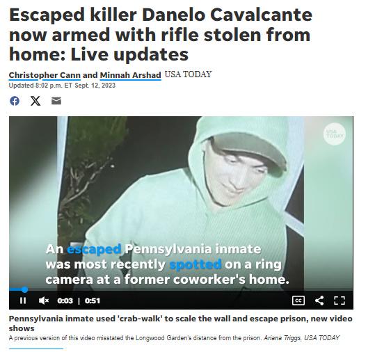 據(jù)此前報(bào)道,8月31日上午,卡瓦爾坎特從賓州切斯特縣監(jiān)獄越獄。自其越獄后,已多次被監(jiān)控拍到,也有目擊者見到過他。目前,對(duì)于提供線索幫助抓捕該逃犯的懸賞金額已達(dá)到2.5萬美元。
