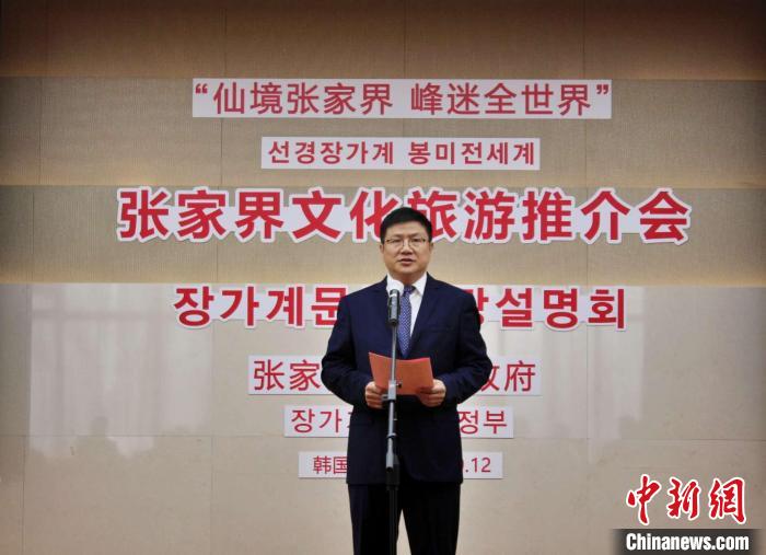 圖為張家界市副市長楊洪峰致辭。中國駐首爾旅游辦事處 供圖
