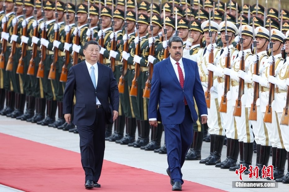 9月13日下午,中國(guó)國(guó)家主席習(xí)近平在北京人民大會(huì)堂同來(lái)華進(jìn)行國(guó)事訪問(wèn)的委內(nèi)瑞拉總統(tǒng)馬杜羅舉行會(huì)談。會(huì)談前,習(xí)近平在人民大會(huì)堂東門(mén)外廣場(chǎng)為馬杜羅舉行歡迎儀式。中新社記者 盛佳鵬 攝