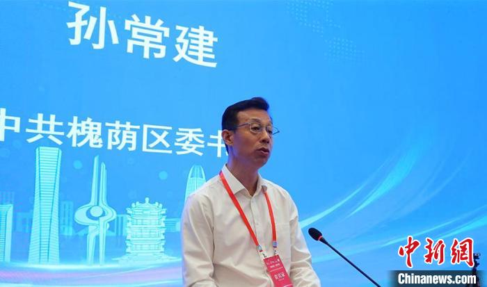 圖為槐蔭區(qū)委書記孫常建在開幕式濟(jì)南會場上發(fā)表致辭。濟(jì)南市槐蔭區(qū) 供圖