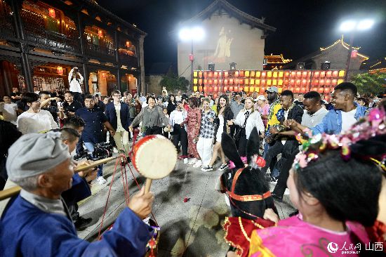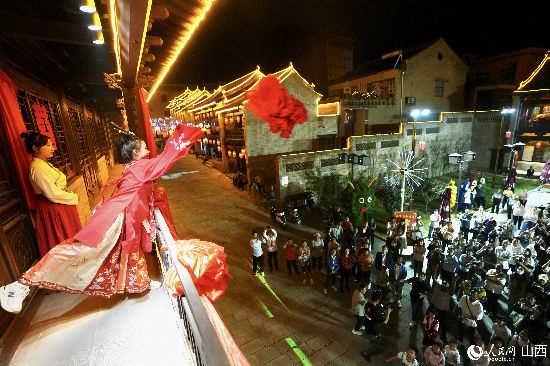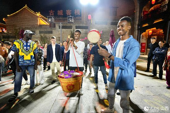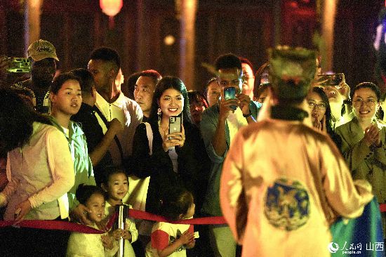 眼花繚亂的民俗表演,沉浸式的古城巡游,絢爛的城樓燈光秀,陶醉的狂歡……9月15日夜晚,在即將結(jié)束山西之行的前夜,2023“漢字緣”國(guó)際故事大會(huì)決賽的選手們夜游山西省晉城市陽城縣郭峪古城,于燈火闌珊處感受古城中的人間煙火。(人民網(wǎng) 盧鵬宇攝)