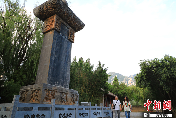 9月15日,河南登封,游客參觀嵩陽書院大唐碑。 中新社發(fā) 李新華 攝