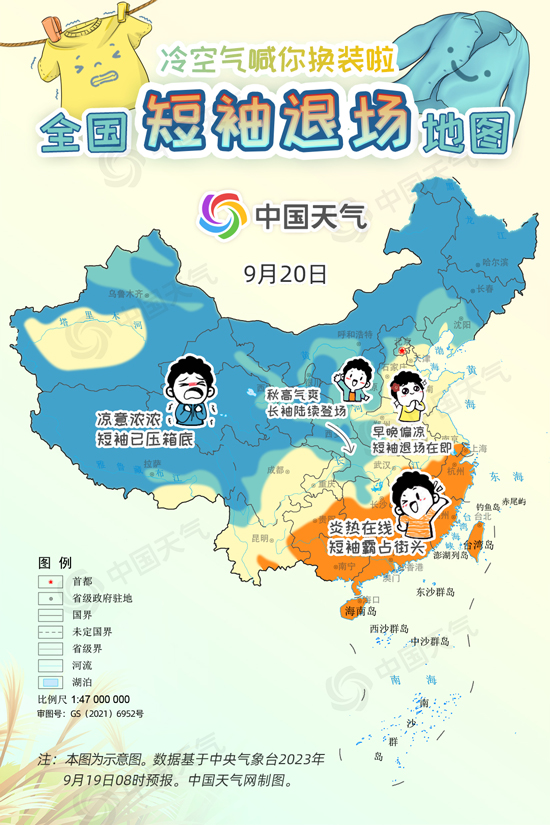 中國天氣網(wǎng)訊 進(jìn)入9月中旬,冷空氣變“勞模”頻繁來襲,西北、東北大部都已邁入秋天門檻,但華北一帶今年秋天似乎來得有點(diǎn)兒晚,南方地區(qū)白天甚至熱到還要開空調(diào),不少網(wǎng)友喊話“秋高氣爽何時(shí)能來?”今起三天(9月19日至21日),受冷空氣和降雨共同影響,長江以北大部地區(qū)將陸續(xù)迎來降溫,開啟秋日初體驗(yàn)。中國天氣網(wǎng)特別推出全國短袖退場地圖,看看哪里可以安排秋天的第一件長袖。