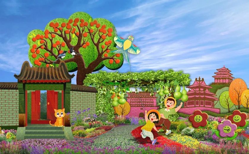 9. 西單西南角的“美好家園”花壇頂高8.5米,以京城胡同群眾的幸福生活為場景,配以放風(fēng)箏的少年、柿子樹、花架、中軸景觀等生機(jī)盎然的景象,書寫了人民幸福生活的新圖景。