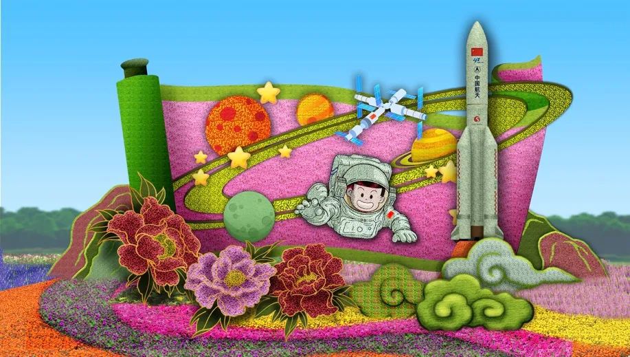 10. 復(fù)興門東北角的“筑夢未來”花壇頂高8.5米,以中國航天員、空間站為主景,寓意航天強(qiáng)國建設(shè)蓬勃發(fā)展,助力中國夢早日實(shí)現(xiàn),全面推進(jìn)中華民族偉大復(fù)興,譜寫新時(shí)代中國特色社會(huì)主義更加絢麗的華章。